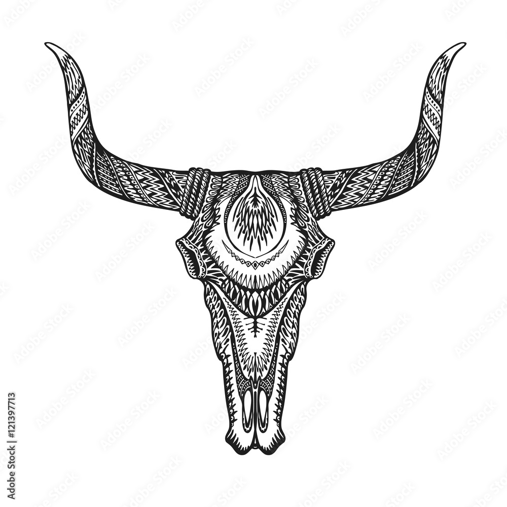 Decorative Bull Skull In Tattoo Tribal Style Hand Drawn Vector Illustration Stock Vector Adobe Stock